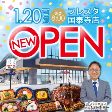 フレスタ国泰寺店が2026年1月20日(火)NEWオープン! 「わたしにぴったり!ちょうどいいね!」をコンセプトに皆様に美味しさをお届けします♪ ご来店を心よりお待ちしております。