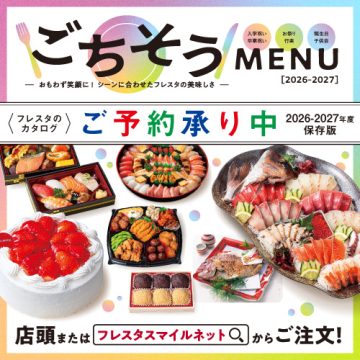 誕生日、記念日、行事の日、家族の集まりや頑張ったご褒美に。 特別な一日を晴れやかにする“ごちそう”を今年もフレスタが揃えました。 シーンに合わせた「美味しさ」をフレスタがお届けします♪ ■ご予約承り期間: 2027年2月24日(水)まで WEB予約は2027年2月23日(火)まで ■商品お渡し期間: 2026年3月1日(日)~2027年2月28日(日) ※一部お渡しできない期間がございます。詳細は各商品ページをご確認ください。
