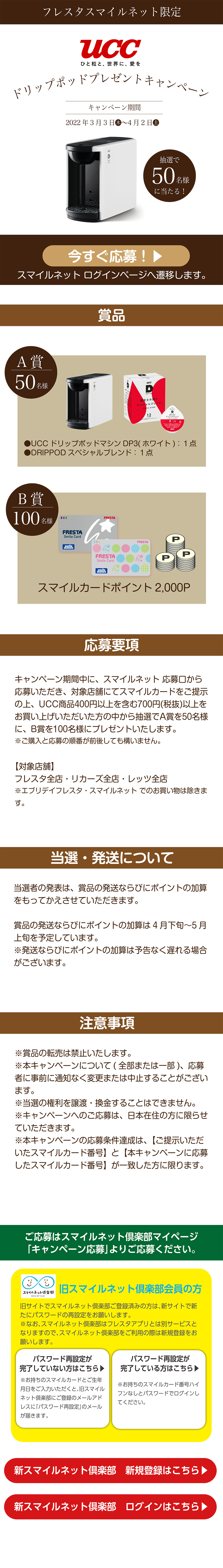 【フレスタスマイルネット限定】UCCドリップポッドプレゼントキャンペーン