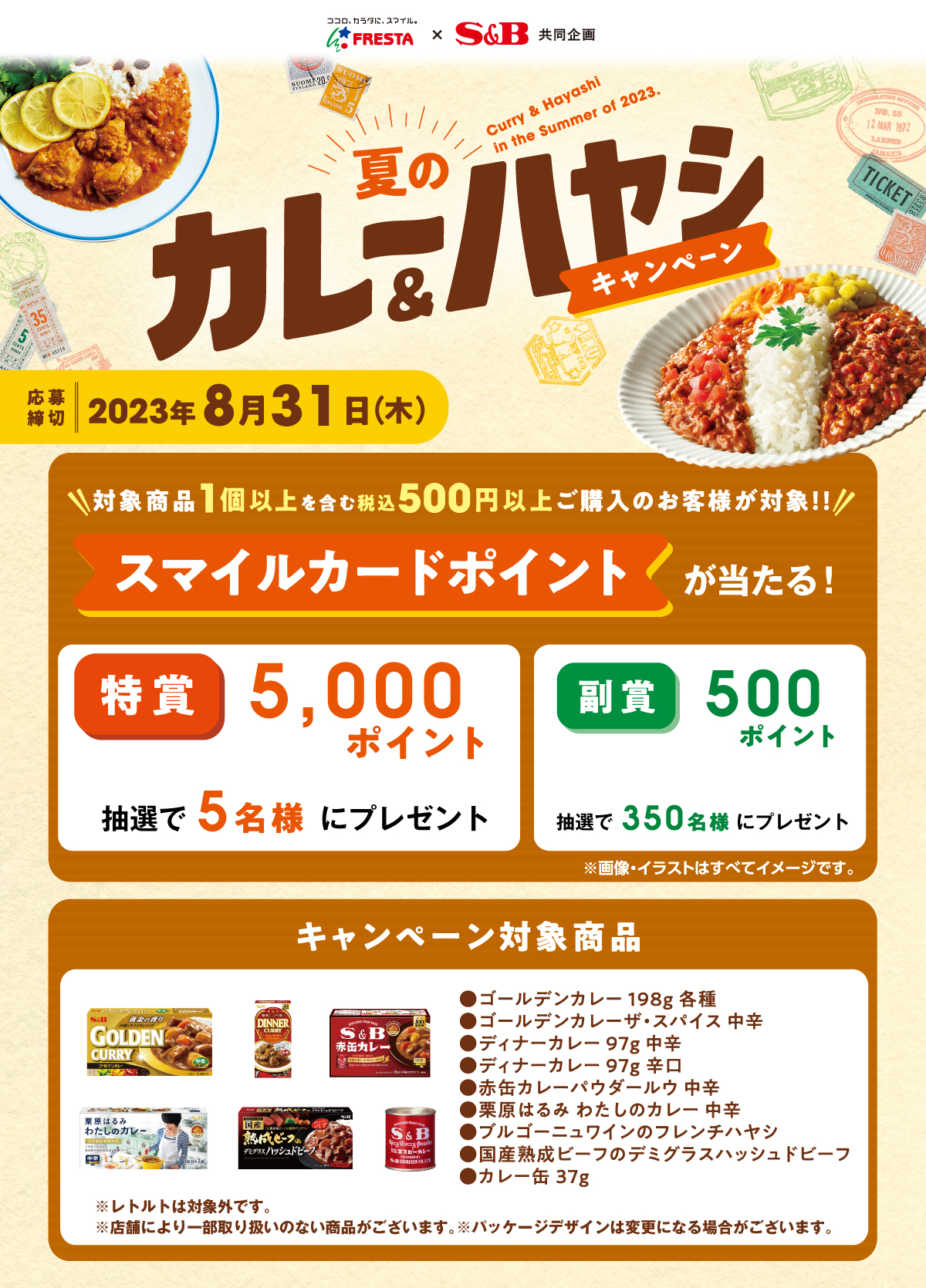 - 【フレスタ×SB食品】夏のカレー&ハヤシ☀ポイントプレゼントキャンペーン