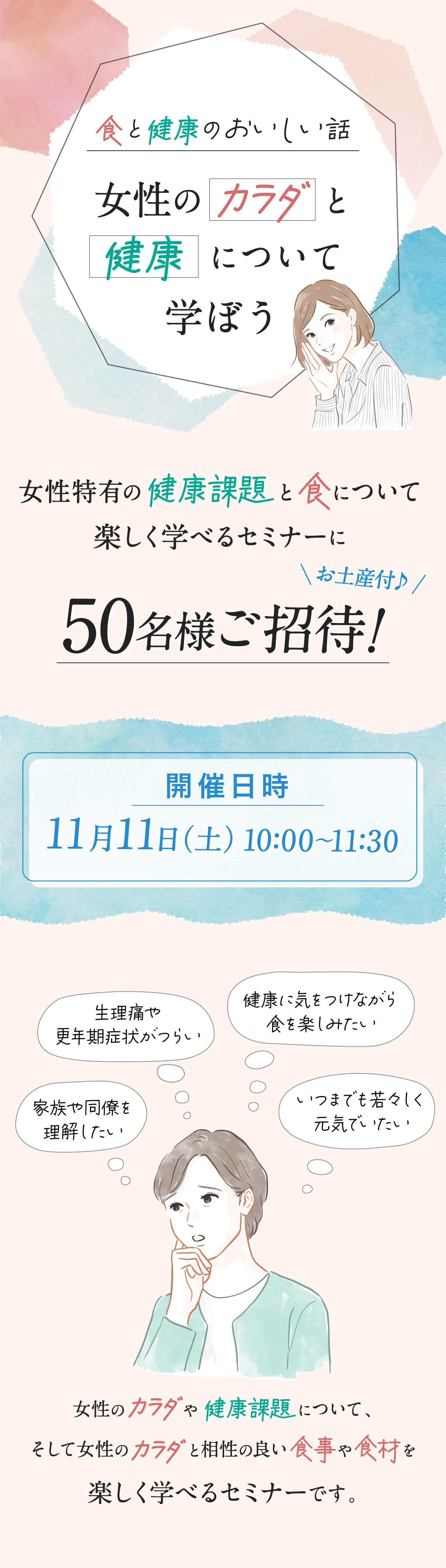 11/11(土)開催「食と女性の健康セミナー」50名様ご招待!