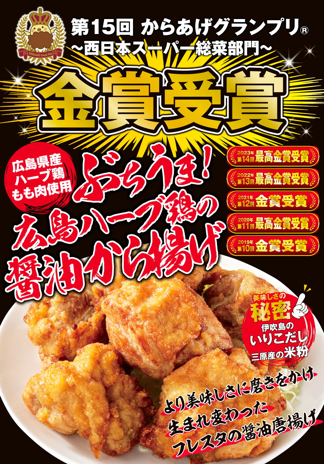 第15回からあげグランプリ~西日本スーパー総菜部門~でフレスタの「ぶちうま!広島ハーブ鶏の醤油から揚げ」が「金賞」を受賞!