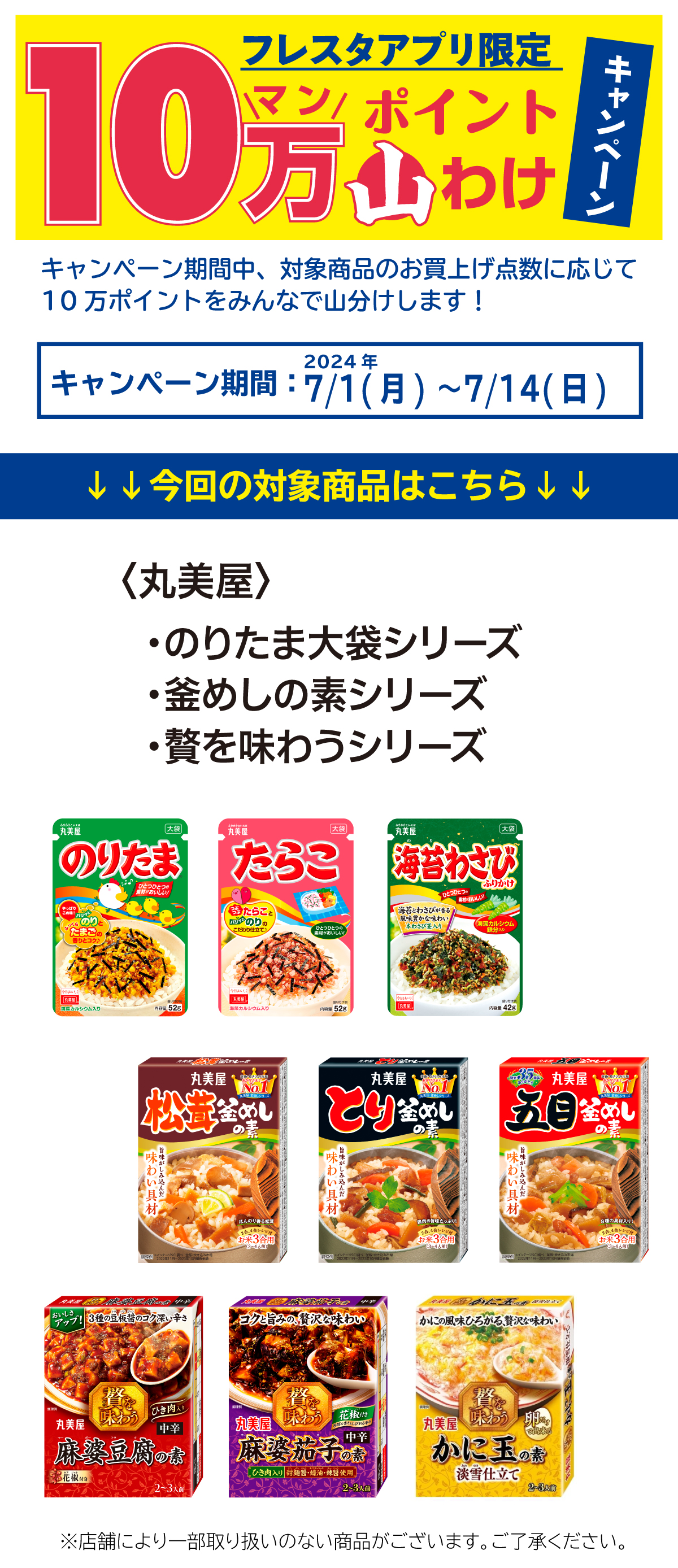 - 【フレスタアプリ限定】丸美屋10万ポイント山分けキャンペーン