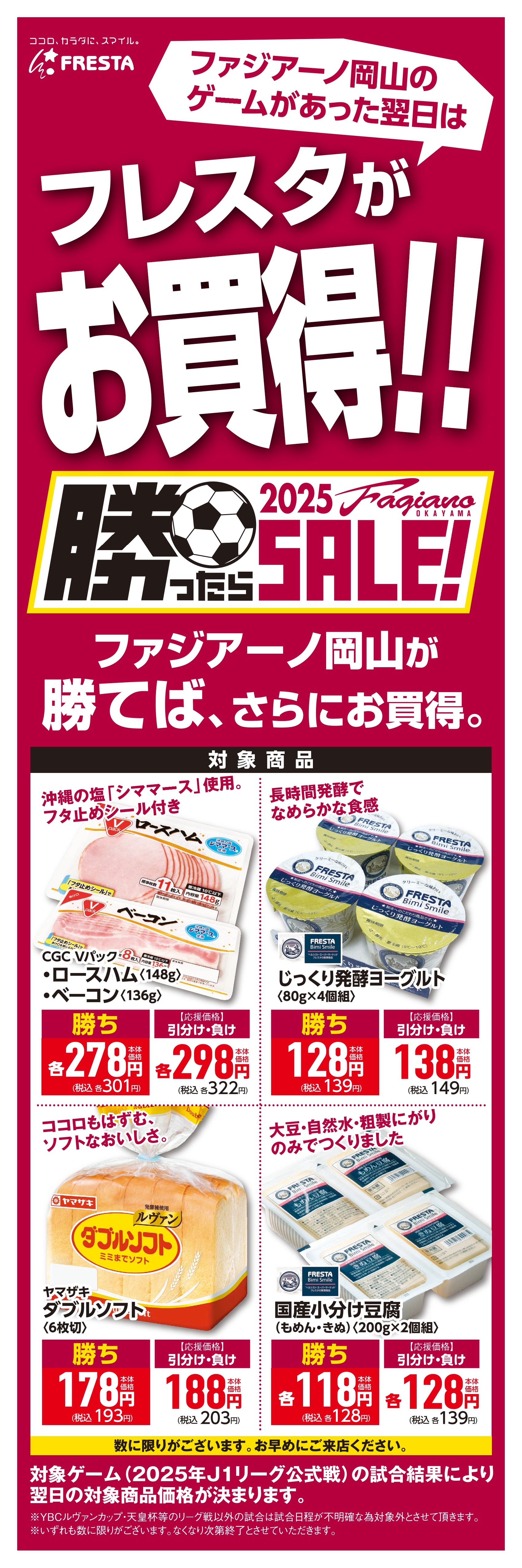 【フレスタ×ファジアーノ岡山】2025 FAGIANO勝ったらSALE★