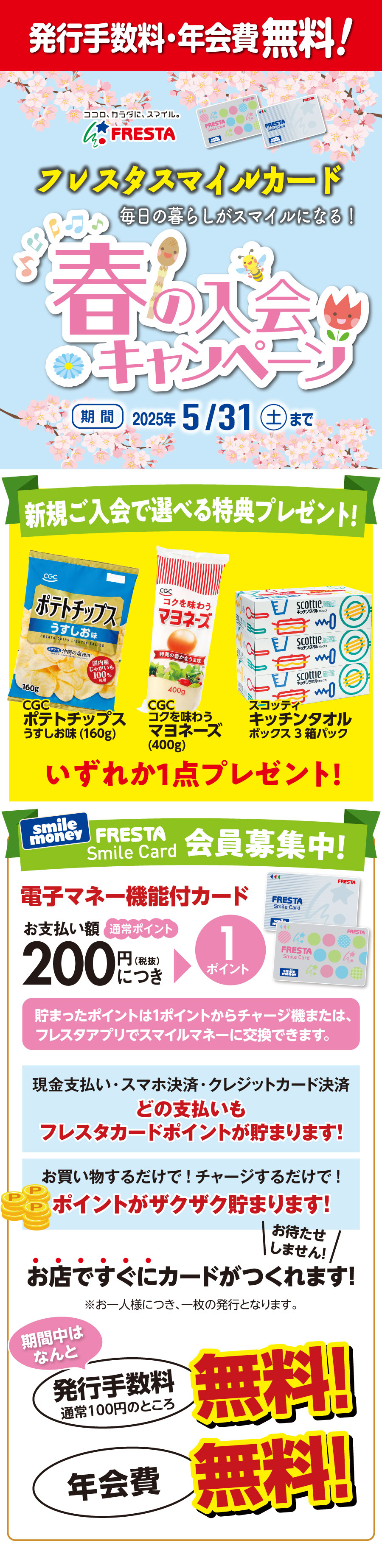 【フレスタスマイルカード】春の入会キャンペーン【アプリ登録でさらにお得!】