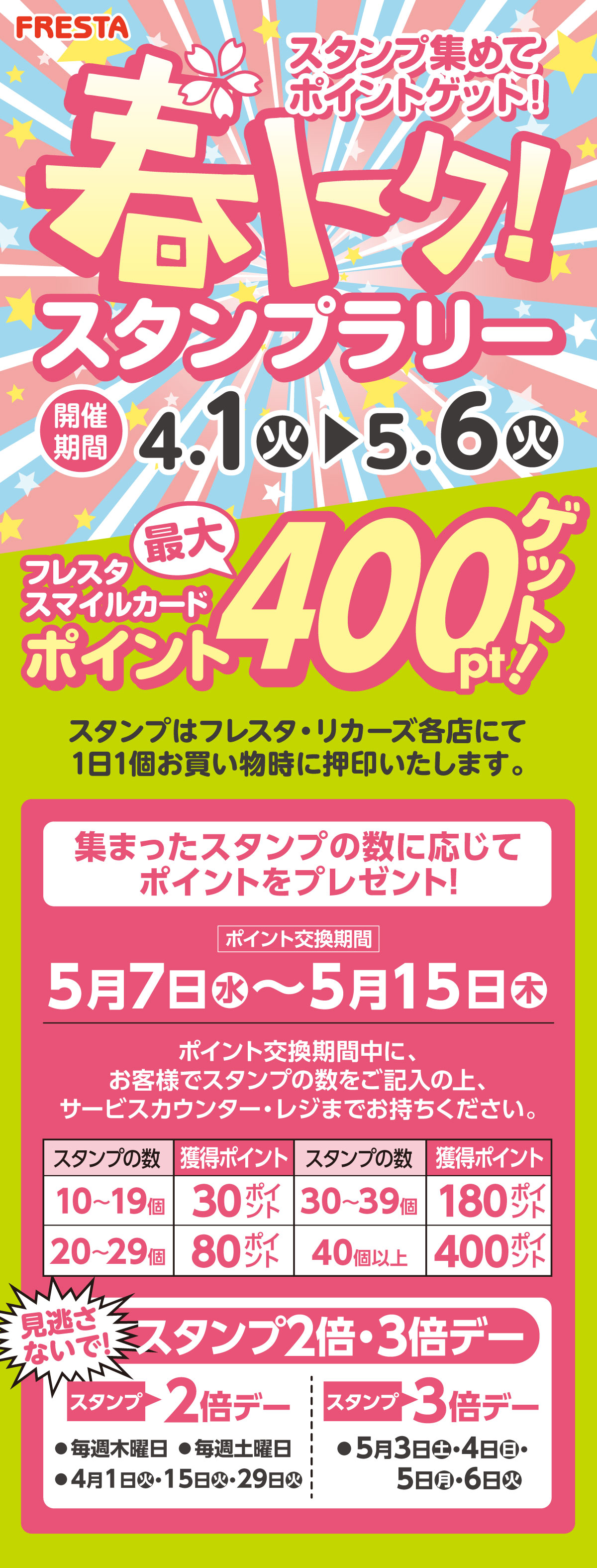 【最大400ポイントゲットのチャンス★】春トク!スタンプラリー