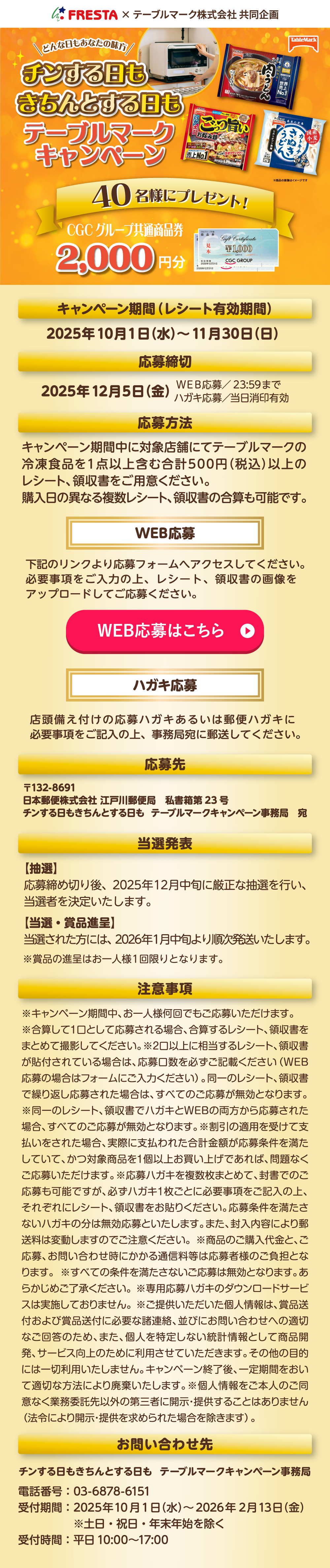 【フレスタ×テーブルマーク】チンする日もきちんとする日も テーブルマークキャンペーン