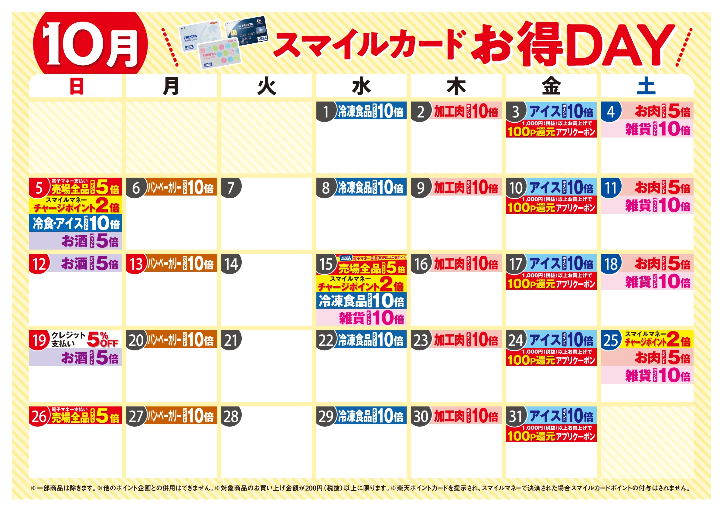 【2025年10月ポイントカレンダー】『スマイルカードポイントお得DAY』をチェックしよう!