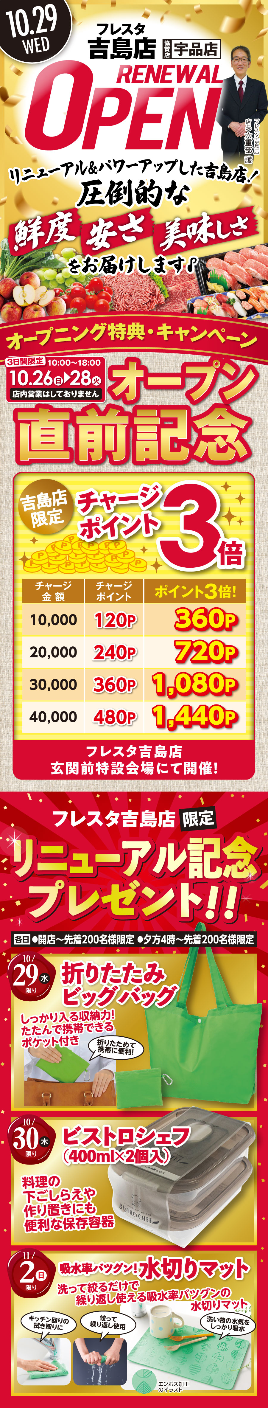 【リニューアルOPEN】フレスタ吉島店10月29日(水)リニューアル!特典・お買い得情報をご紹介♪