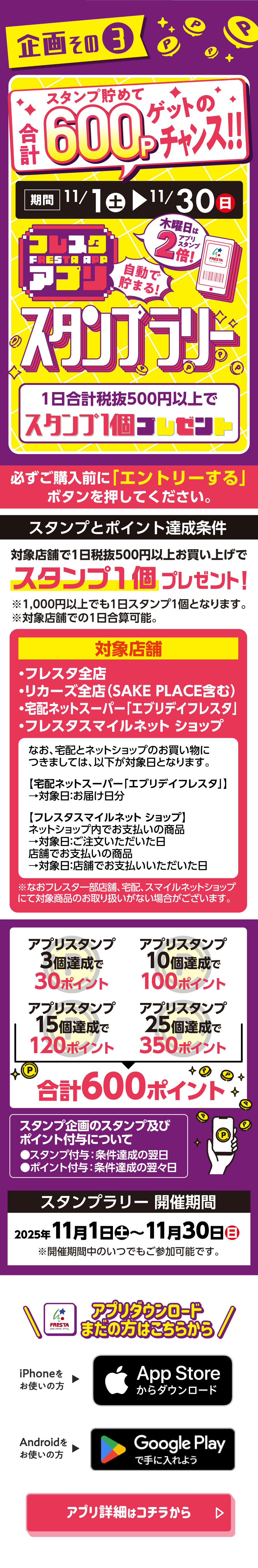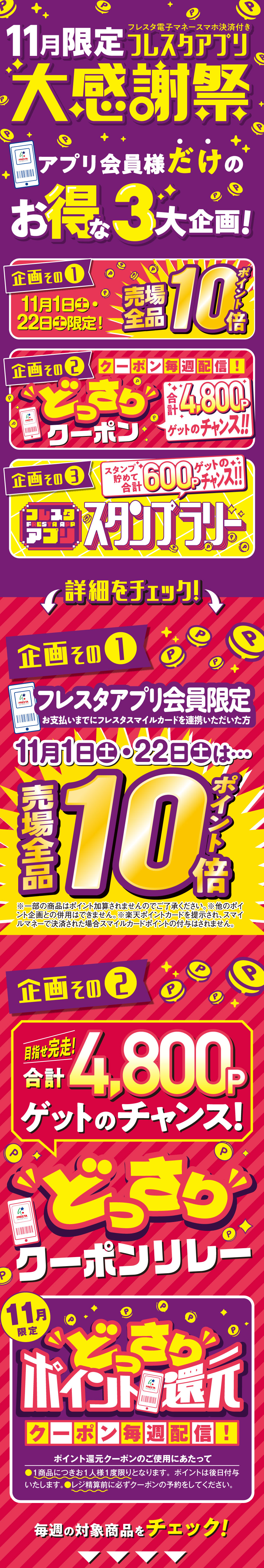 【11月は…】フレスタアプリ大感謝祭★アプリ会員様だけのお得な3大企画