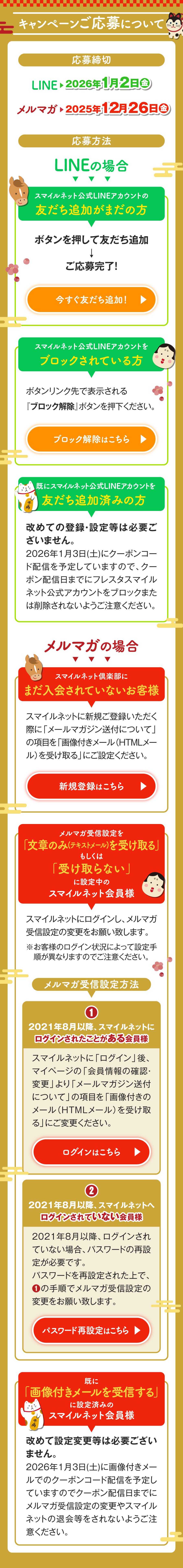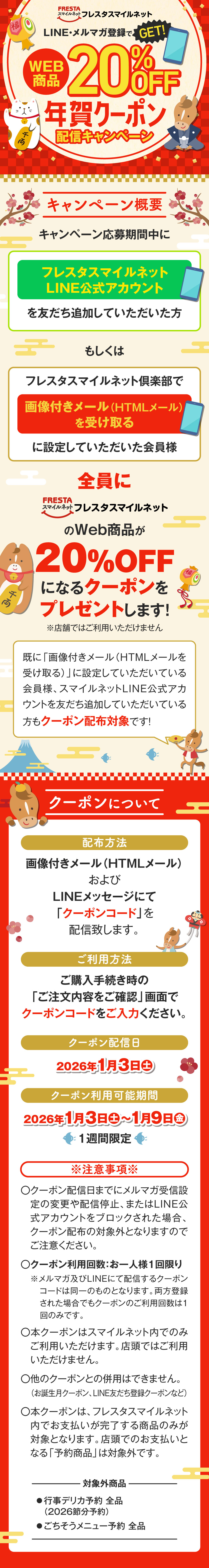 スマイルネットのWEB商品20%OFFクーポンGETのチャンス!年賀クーポン配信キャンペーン