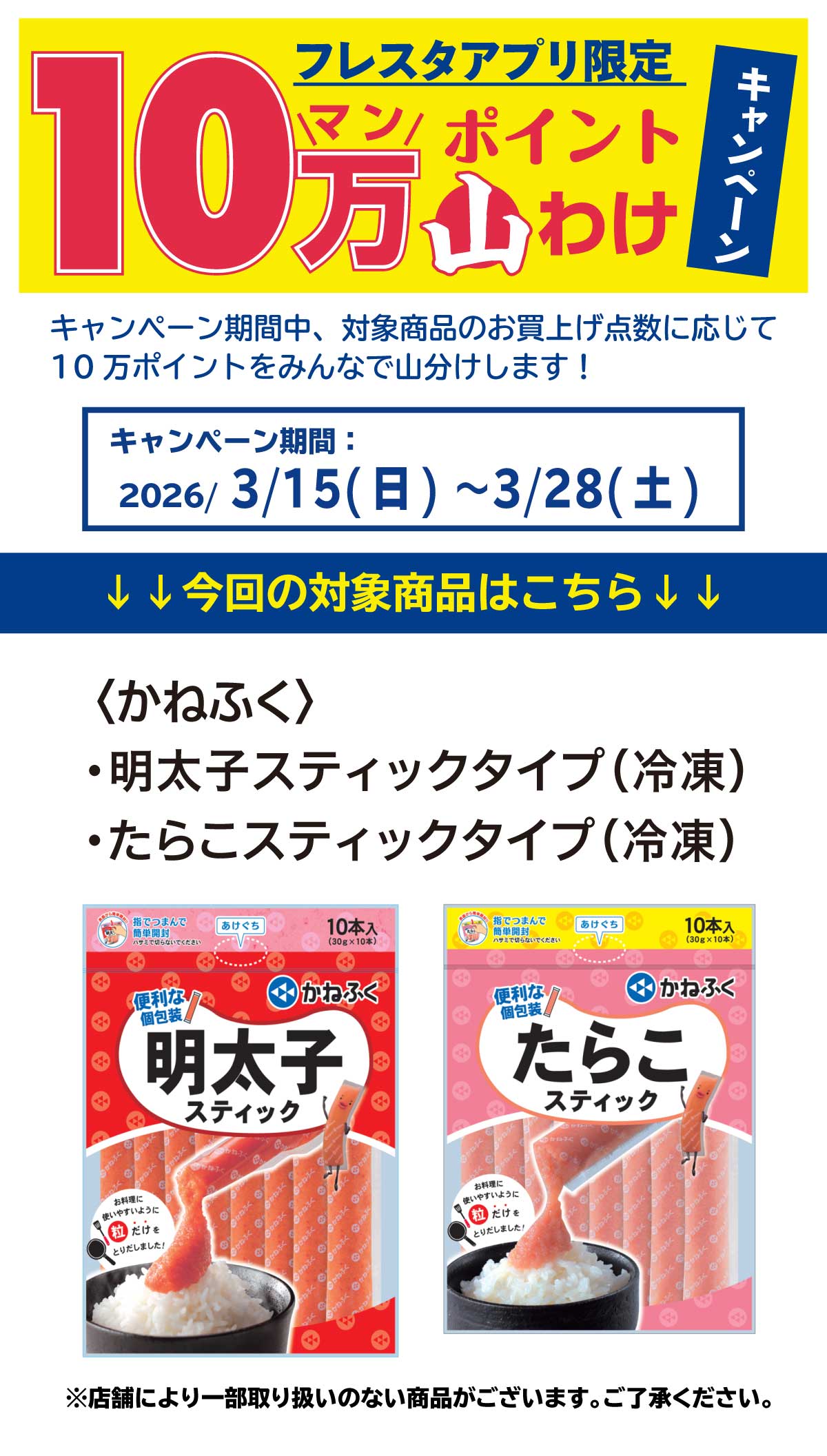 ②キャンペーン期間中フレスタにてかねふくの対象商品をお買い上げ