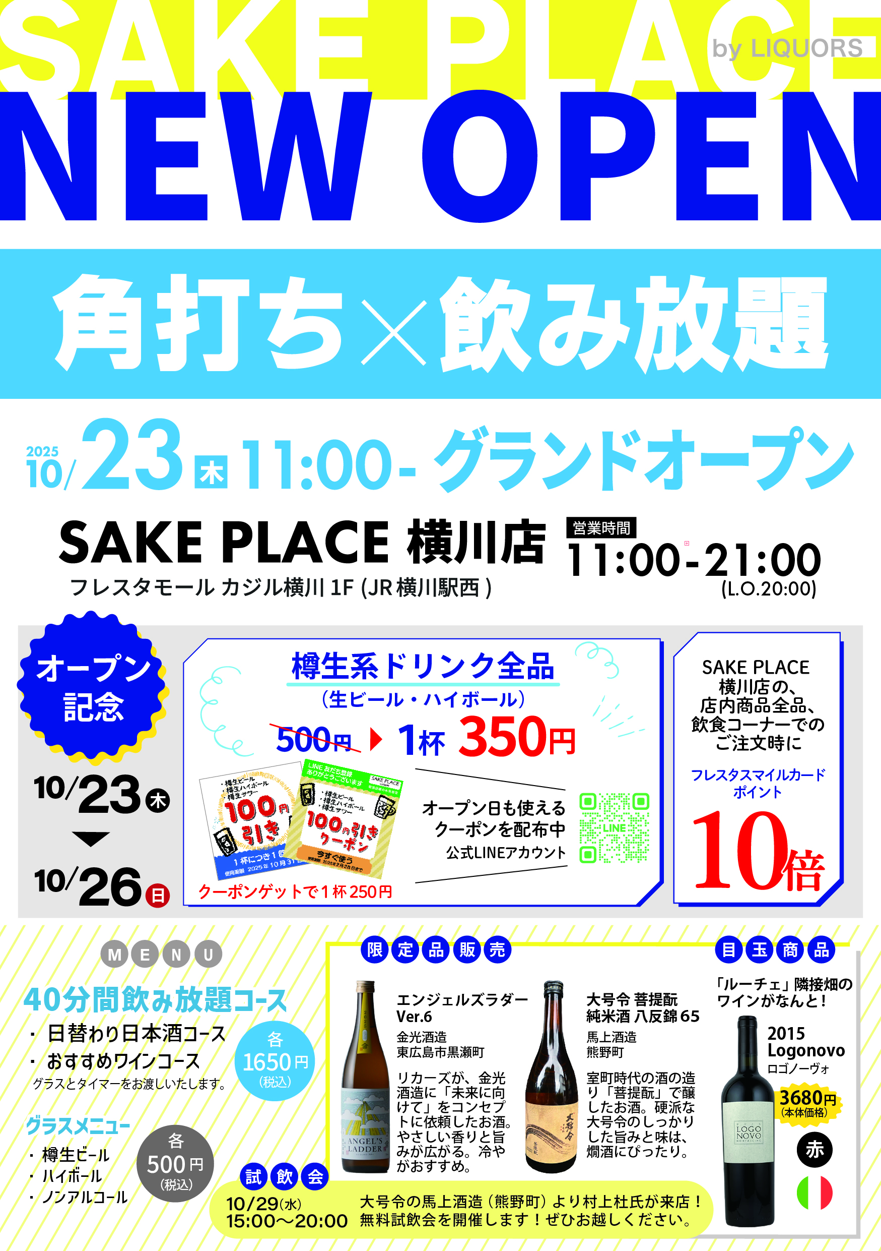 新店「SAKE PLACE 横川店」 オープンセール開催!