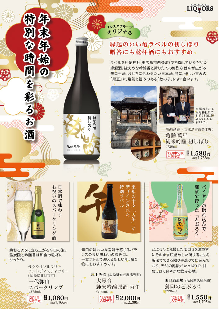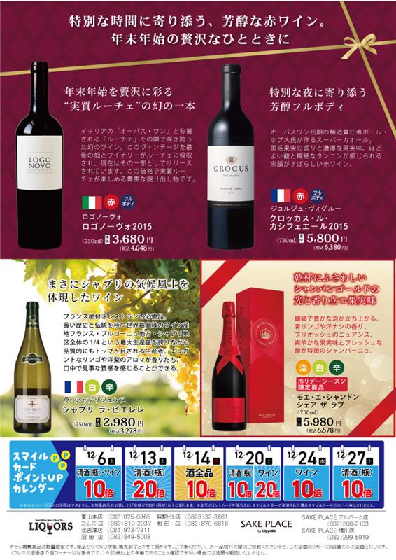 年末年始のお酒はSAKEPLACE・リカーズへこの時期に味わえるしぼりたての日本酒新酒やリカーズ限定取扱リカーズのソムリエがおすすめする12月にピッタリのワインなど取り揃えてます毎週末ポイント販促も目白押し年末年始を楽しむお酒はリカーズでお買い求めください(商品の取り扱いや販促で一部実施がない店舗もございます)