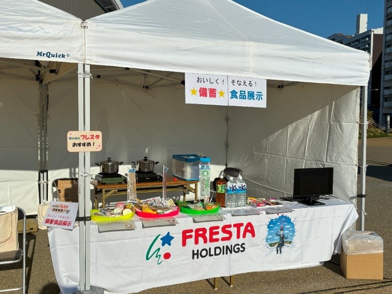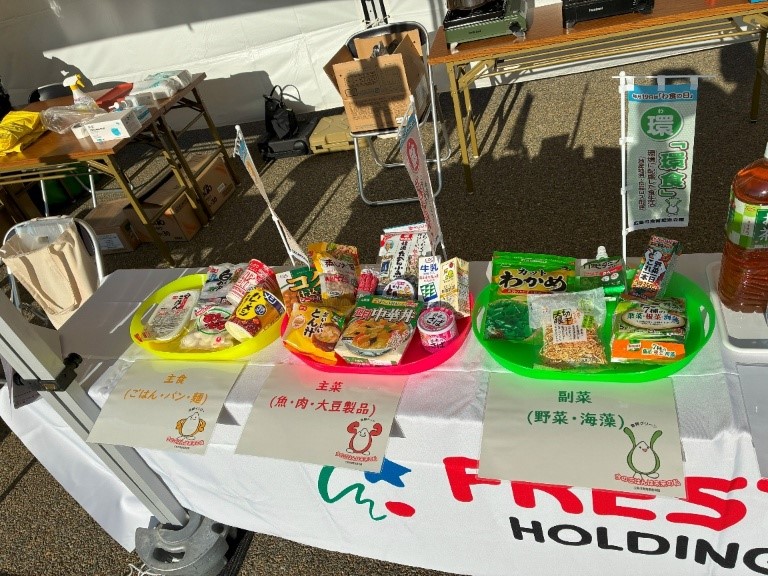 本イベントへフレスタホールディングスも賛同し、中区地域支えあい課の皆さまのご協力のもと「おいしく!そなえる!備蓄食品展示」を行わせていただきました。