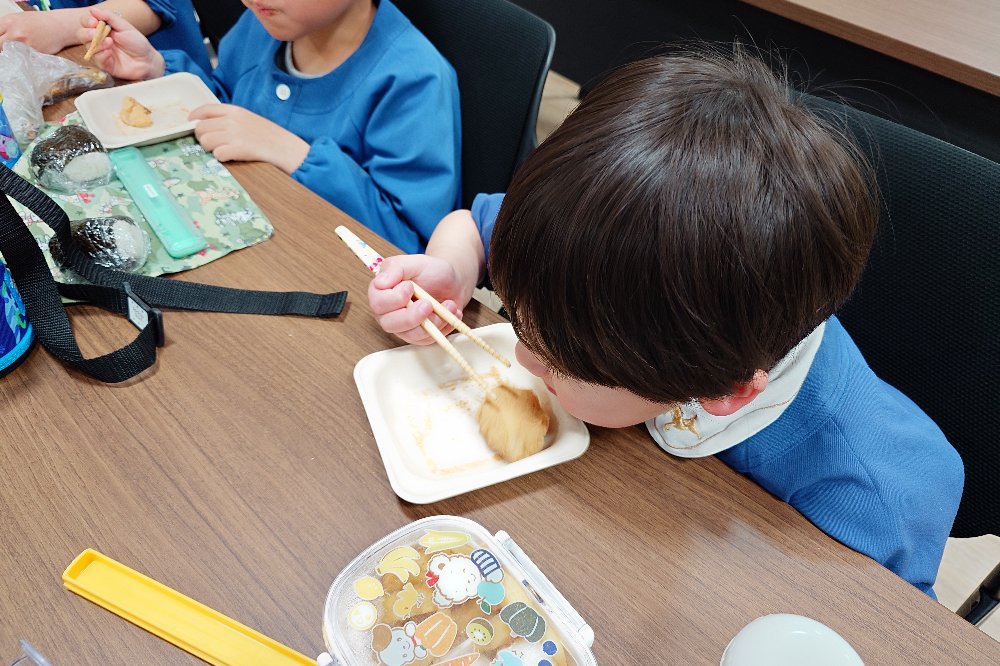 普段のおやつは洋菓子がメインのお子さんも多く、初めてさわるもち米やあんこに興味津々。(事前に保護者の方へアレルギーの確認はOK!です)